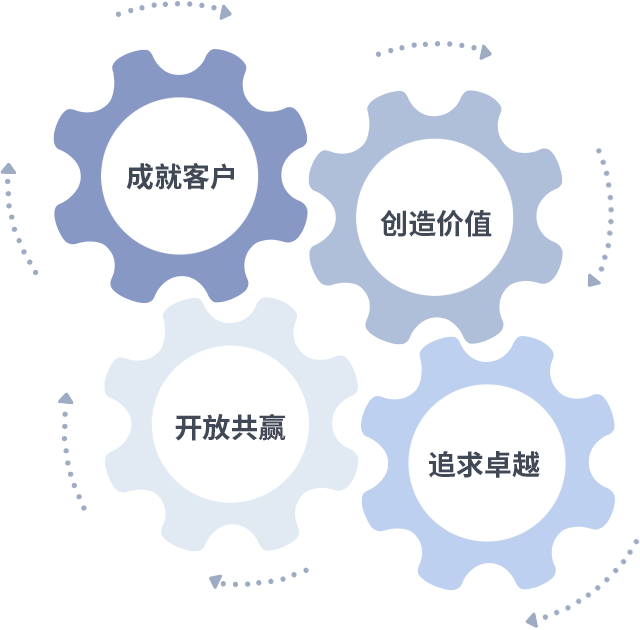 成就客户是一切决策的出发点,创造价值是衡量所有工作的标准,追求卓越是尊龙凯时-人生就是搏做事做人的态度,开放共赢是尊龙凯时-人生就是搏的格局也是最终的结果。价值观的齿轮环环相扣,推动着组织里的每个人不断向前。